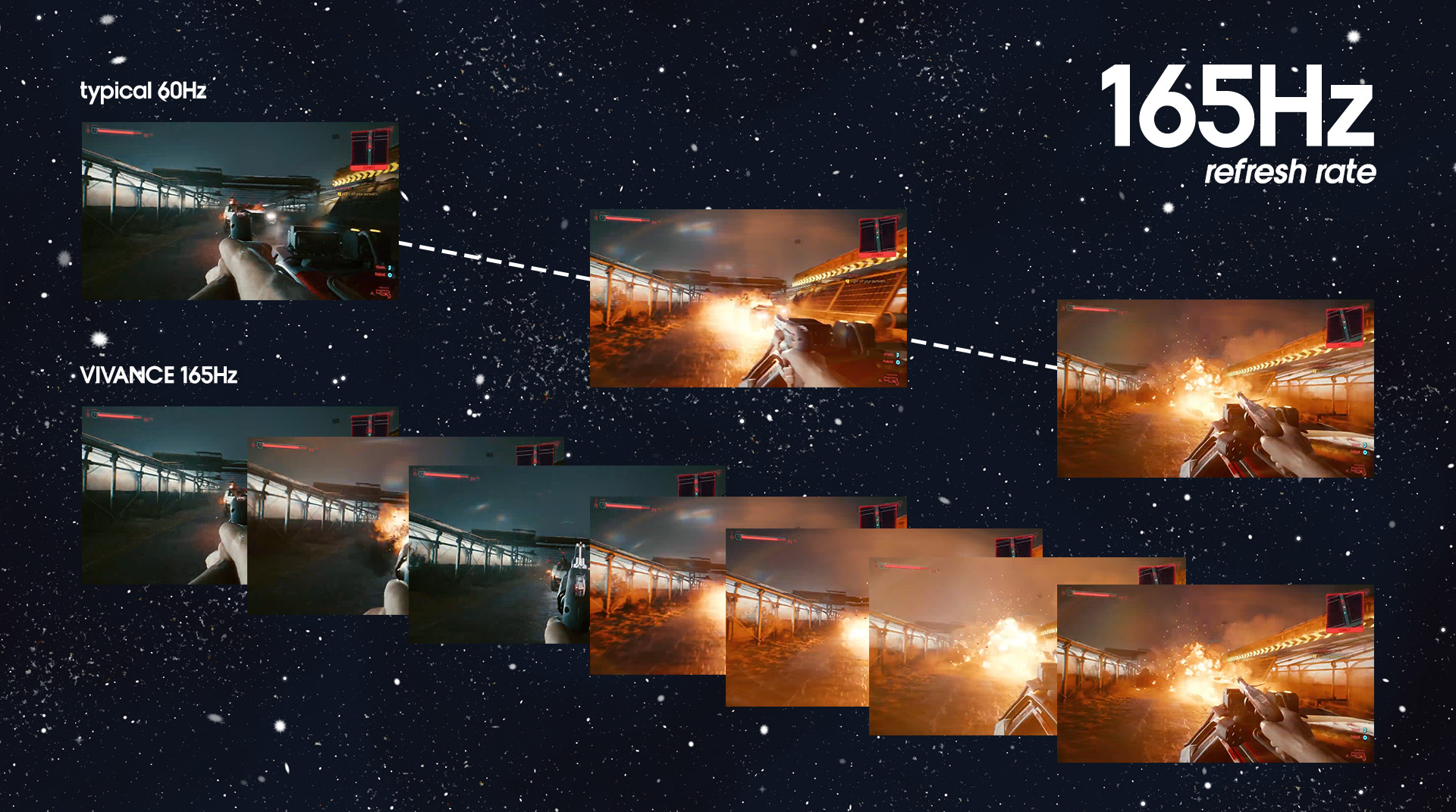 Với tốc độ làm mới cực nhanh 165Hz và thời gian phản hồi MPRT 1ms, hiện tượng giật hình, nhòe và mờ chuyển động sẽ được loại bỏ.