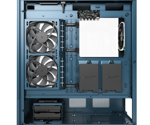 Quạt RX120 ARGB PWM với cánh quạt đảo chiều được thiết kế chuyên biệt để hút gió từ mặt bên và buồng PSU mà vẫn giữ được tính thẩm mỹ. Lượng gió hút vào được tăng cường nhờ các lỗ thoáng mở rộng từ mặt dưới của tấm trước đến buồng PSU, trong đó quạt đảo chiều tại buồng PSU có thể hút khí hiệu quả để làm mát GPU.