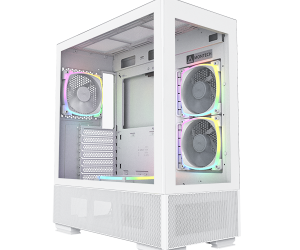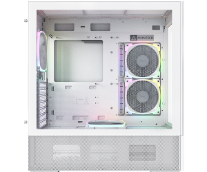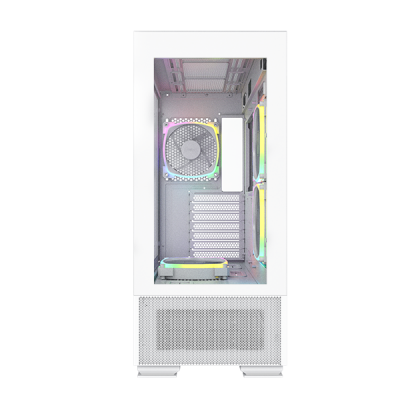 Nhờ thiết kế mặt trước và mặt bên liền mạch, người dùng có thể chiêm ngưỡng toàn bộ không gian bên trong ngay từ cái nhìn đầu tiên. Lớp lưới mịn kéo dài từ phía dưới của mặt trước đến buồng PSU, kết hợp cùng các quạt ARGB được lắp sẵn, càng làm nổi bật vẻ đẹp tuyệt tác này.