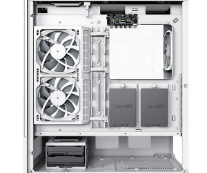 Quạt RX120 ARGB PWM với cánh quạt đảo chiều được thiết kế chuyên biệt để hút gió từ mặt bên và buồng PSU mà vẫn giữ được tính thẩm mỹ. Lượng gió hút vào được tăng cường nhờ các lỗ thoáng mở rộng từ mặt dưới của tấm trước đến buồng PSU, trong đó quạt đảo chiều tại buồng PSU có thể hút khí hiệu quả để làm mát GPU.