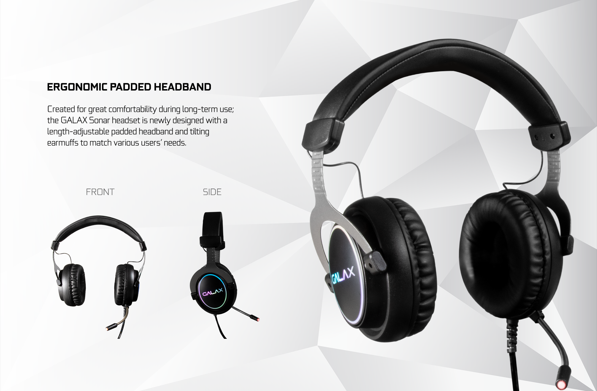 Được thiết kế để mang lại sự thoải mái tối đa khi sử dụng trong thời gian dài, dòng tai nghe GALAX Sonar sở hữu băng đô có đệm êm và khả năng điều chỉnh linh hoạt, cùng góc xoay chụp tai phù hợp với nhu cầu của người dùng.